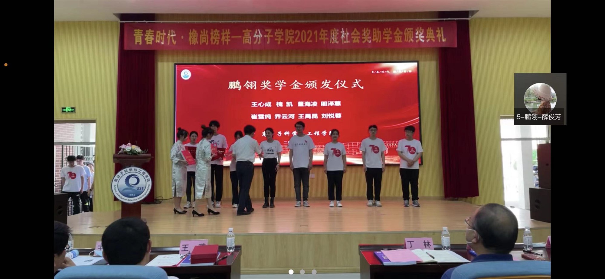 近日,青岛科技大学高分子学院举行2021年度社会奖、助学金颁奖典礼,天津8868体育官网登录入口等十一家企业作为助学金捐赠代表受邀参加线上会议,流体管路事业部总经理高贤华、橡胶管路部部长薛俊芳代表公司出席了会议。